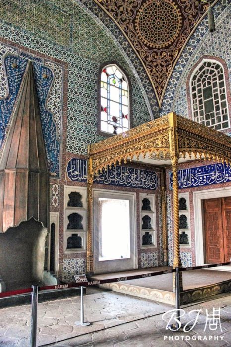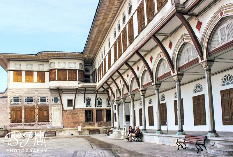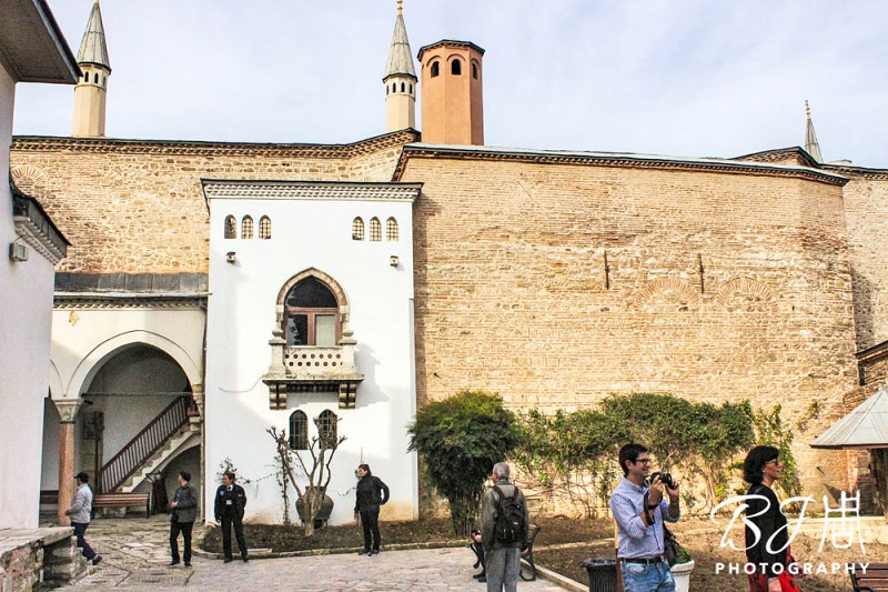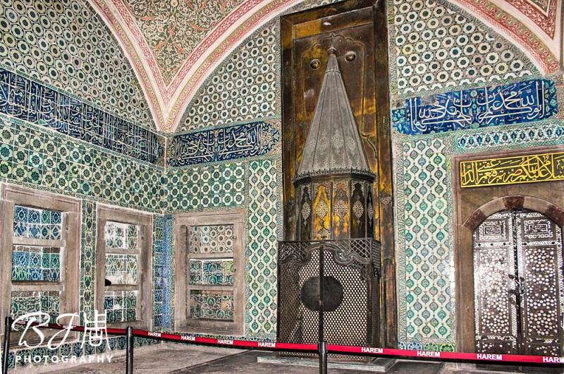 就像中國紫禁城一樣,托卡比皇宮是城中城,是皇帝居所,是帝王處理政務的地方,各種生活起居所需,都有專責部門照應,分布在四個不同功能的庭院中。安置在第三庭院一隅的後宮,除了蘇丹、太后、妃妾、王子和太監,禁止任何人擅進。