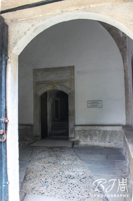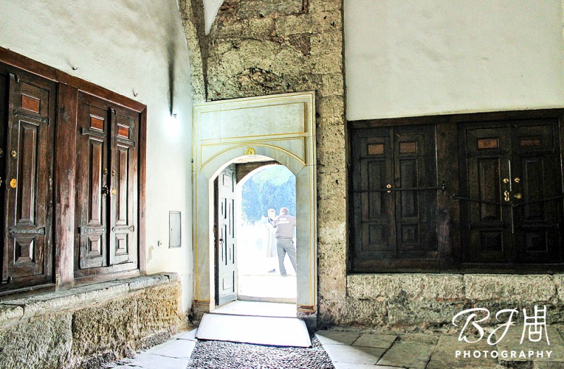 但不知進入後宮的門做得特別小,是防止潛入還是逃跑?看看一旦被送進後宮,經過第一道門,背後關上的是一個世界,跨過第二道門,進入的是另一個世界。下面照片裡兩道相連的門內空間,已經顯示截然不同的境地。
