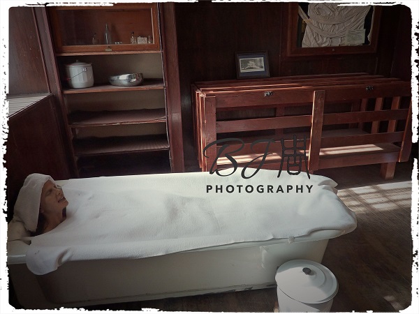 下圖讓病人做浴療,注意後面一個籠櫃,那是用來壓制瘋癲不安的病人