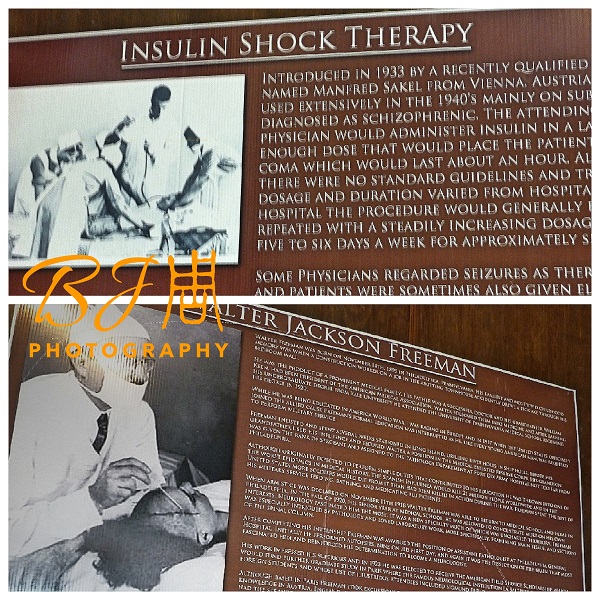 瘋人院的展覽館裡,有一間介紹當時某些實驗,比如用電療、切斷腦白質、顱骨上鑽洞等等(下圖),因此腦殘或枉死的病人不知有多少。據說當時有護士看過手術,嚇得立即辭職而去。