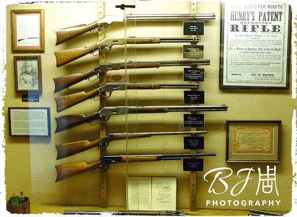 如果讀者不熟悉《溫切斯特連發武器公司》生產的槍彈歷史,今天走進溫切斯特神秘屋,旁邊闢有一間小型博物館(上圖右),從中得以了解Winchester家族在19世紀末期發明製造的亨利來福槍 (Henry Rifle),可以快速填裝子彈,還可以在三秒之內連發,使得當時的牛仔牧民和國家警衛幾乎人手一把。