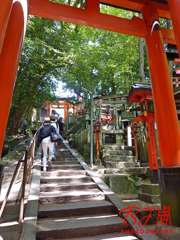 這種景象在日本其他寺廟是看不到的,因為鳥居是代表“神明居住地”的結界,屬於日本原生傳統宗教–神道的一種圖騰。「伏見稻荷大社」又是日本三萬多個稻荷神社的總本宮,難怪該地鳥居有“千軍萬馬”的氣勢。