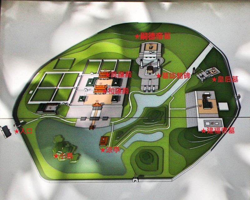 嗣德陵裡還埋了一位建福帝,他是嗣德帝的3位養子之一,登基時14歲,被害時15歲,牽涉了宮廷醜聞和陰謀,那又是另一個故事。建福帝的陪陵,成為一個陵中陵,這也是嗣德陵的奇特之處。