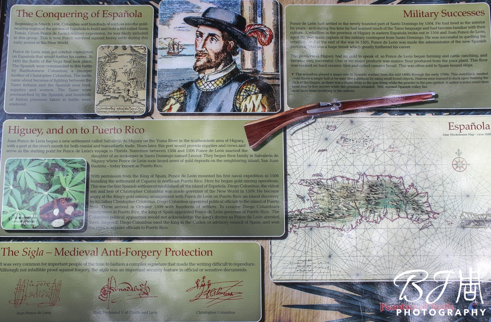 西班牙人在美國建立殖民地時,攜帶了20門火砲來保護剛剛起步的定居點,公園裡陳列了一門 當年樣式的六磅重火炮複製品,每小時燃放演示它們被使用的歷史,另有火繩槍講座與射擊演示。