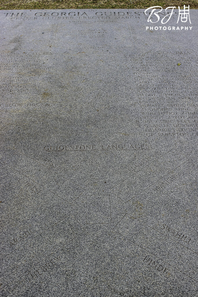 由上好花崗岩製成的指引石紀念碑,位於喬州首府亞特蘭大(Atlanta)以東96公里處。它的形狀是一個T字型的中心柱,頂石重達5千磅,連結中心柱的周圍有四片直立石板,每片高 4.9公尺、重20多噸,以“x”形排列組成,在我看來有點像旋轉門。