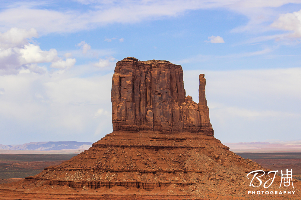 紀念碑谷的標誌景觀是三座小山岩,名稱分別是西手套岩West Mitten Butte、東手套岩 East Mitten Butte、 梅里克岩Merrick Butte。三座小山岩的分布,正好是一個三角形。這種巨石對稱的排列,在大自然界很少見到。