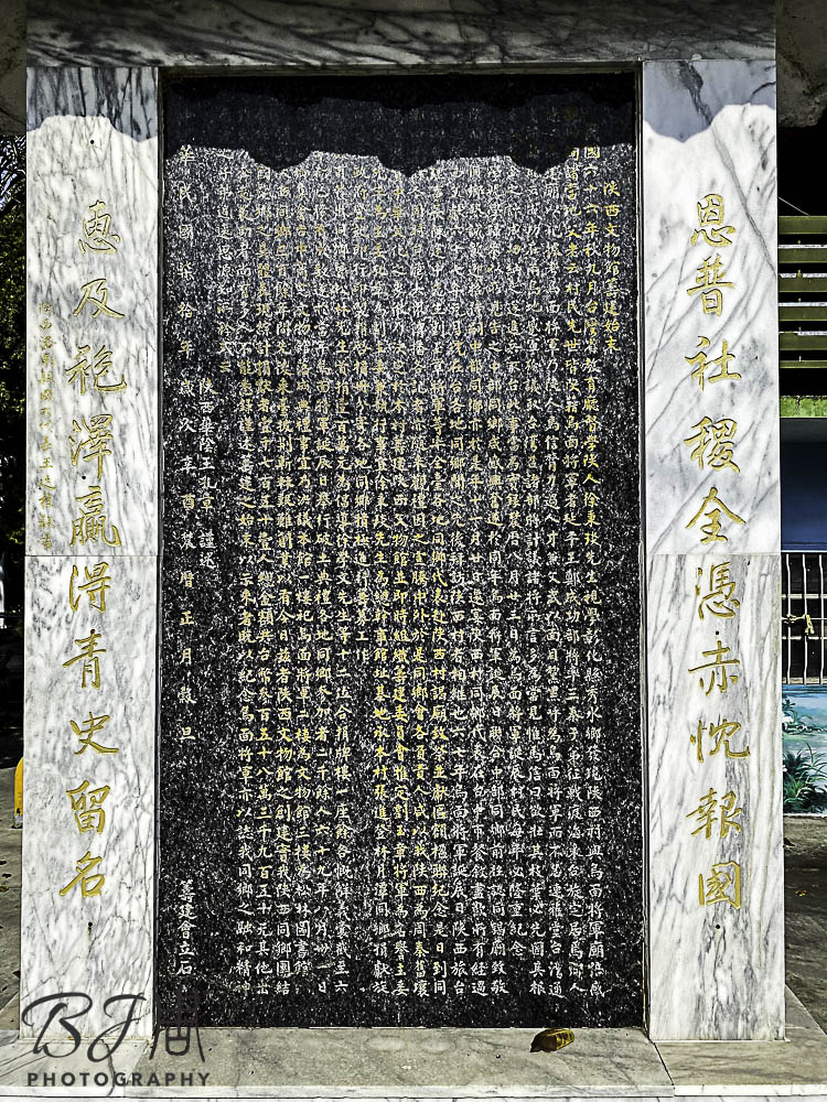 廟後方的「陝西文物館」,也因我去時大門深鎖,管理員不知去向,而憾失參觀內容的機會。倒是在附近墳地轉了一圈,發現新一點的墓碑上寫著「南安、安溪、西河」等等,更早的舊墓碑就看不出斑駁的文字是什麼了。