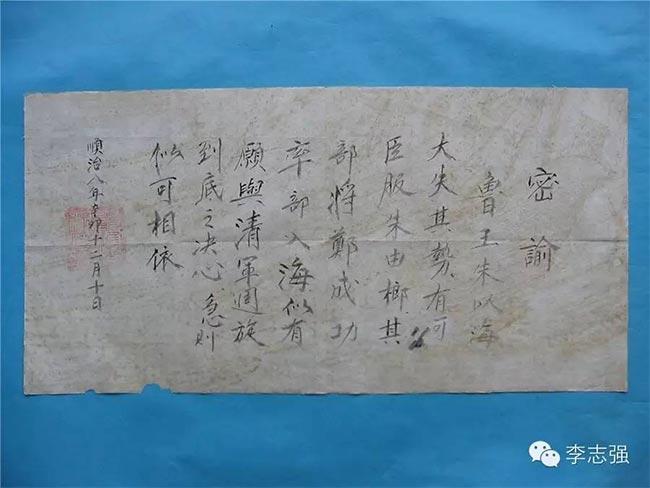 根據大順文檔《密諭》,大順軍曾派出大量密探、臥底、偵騎四處收集情報,尋求抗清同盟,其中包括了鄭成功。這段另文還會再談。