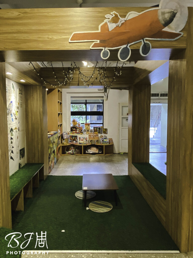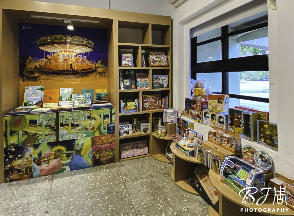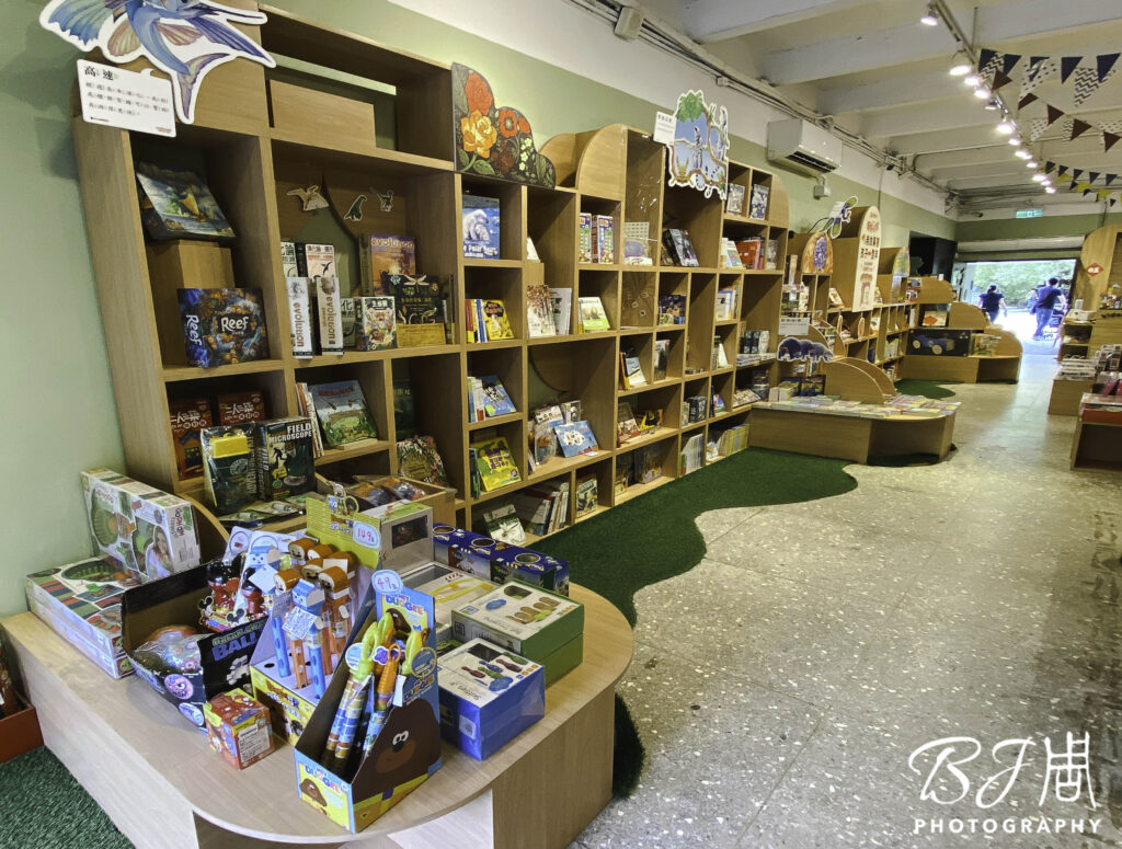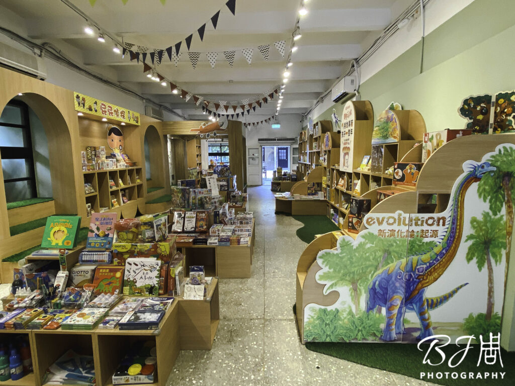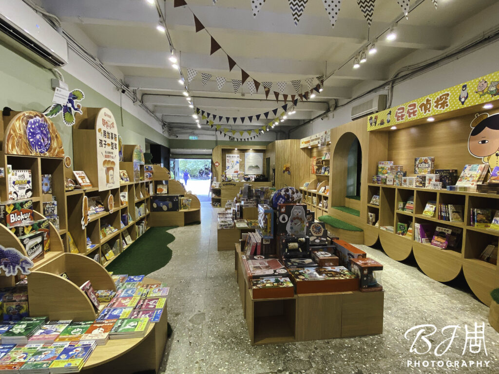 店裡陳列八大類型的書籍華山—哲學瀑布、探險叢林、博學海洋、歷史神木、夢想方舟、藝術洞窟、科學火山、偵探營區,還利用玩教具,連結了體驗功能,並且規劃親子互動、戲劇表演、手作教學等多元活動,以帶動閱讀的設計。