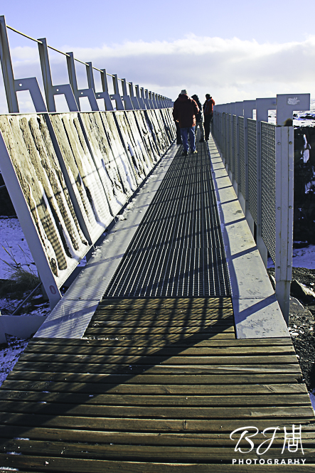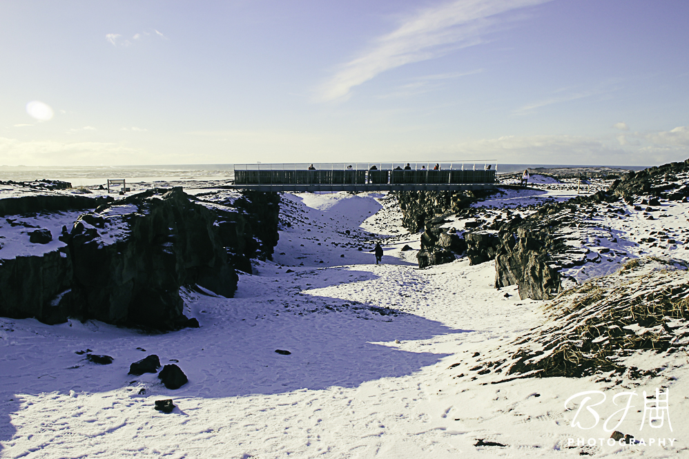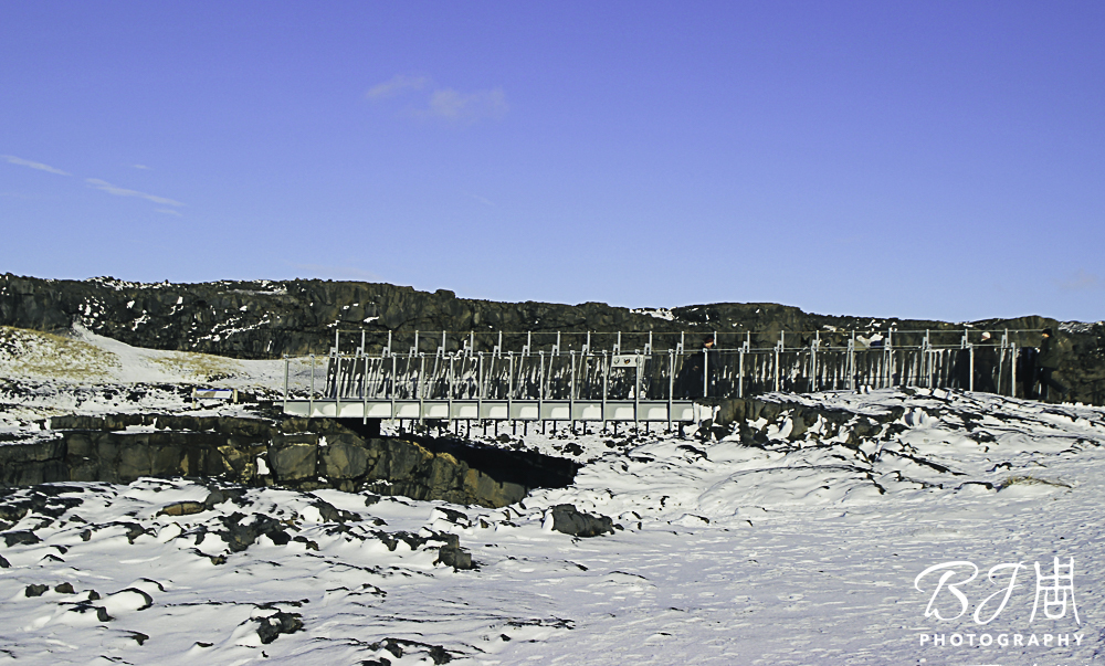 今天在兩大板塊交會處,冰島設置了一座15公尺長的「大陸橋」(Bridge between Continents),就是橫跨這條裂谷的人行橋。