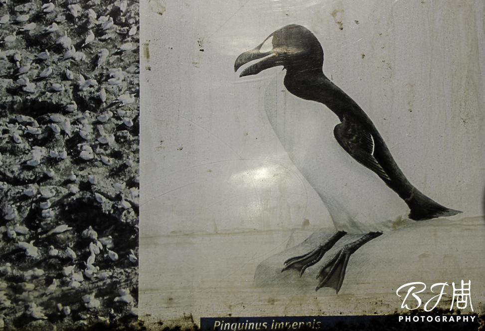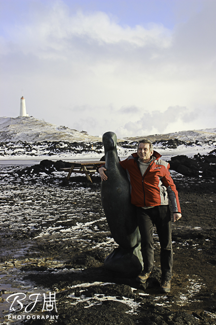 由青銅製成的一隻大海雀雕塑,面向大海,望向埃爾迪島的方向,根據紀錄顯示最後一對大海雀就是在那裡被殺死的。該作品旨在引起人們對環境問題的關注,也是對滅絕物種的紀念。