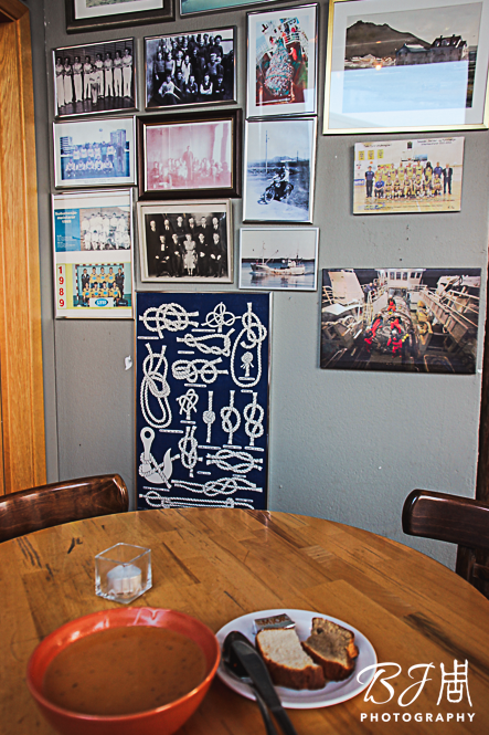 我去過小鎮的港口,在一間由兩位漁夫兄弟開設的碼頭咖啡館(Bryggjan Cafe)歇腳,喝了一碗他們的招牌龍蝦湯,配兩片新鮮出爐的麵包,算是品嘗當地美名小食。