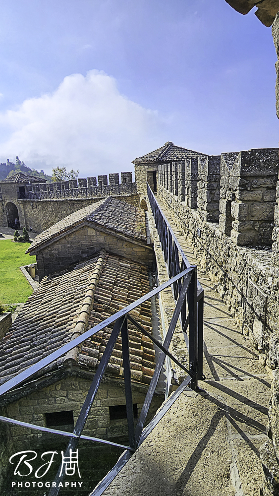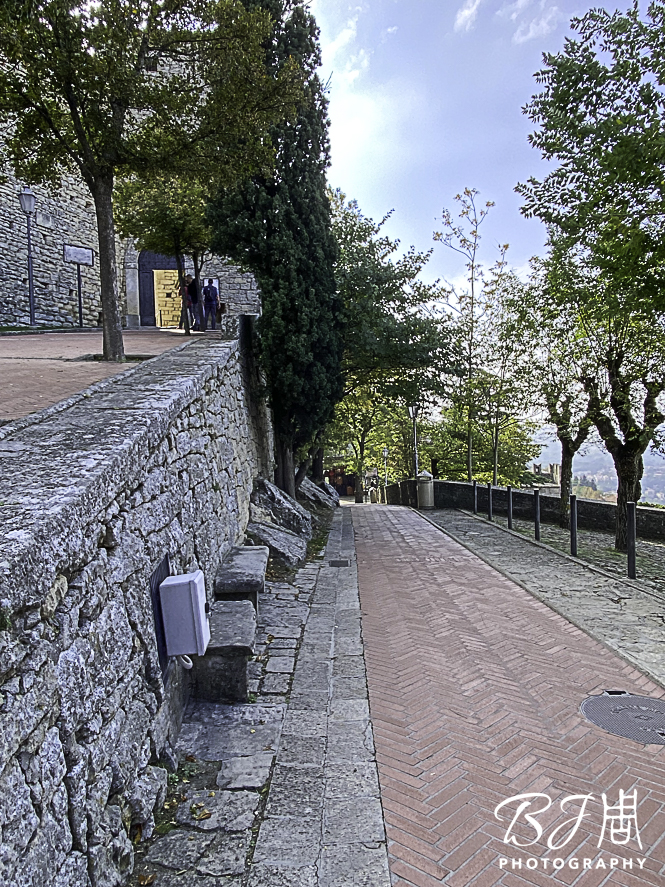 清晨濕氣仍重,砌磚路面走起來倒是不滑,從聖馬利諾市中心悠閒走到三塔中的第一塔,大約只要十來分鐘,走到第三塔就遠了,適合時常爬山健身的人遠征。