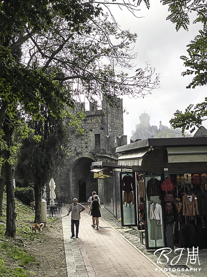 我特意安排大清早上聖馬利諾參觀三塔,雖然沒有趕上看日出,可清晨的老城是另一番風景,沒有遊客的街道上輕籠薄霧,讓人宛如踏入迷離幻境,遊客都要接近十點之後才會逐漸出現,因此只有賣水賣菸的小雜貨店開門服務早鳥遊客。