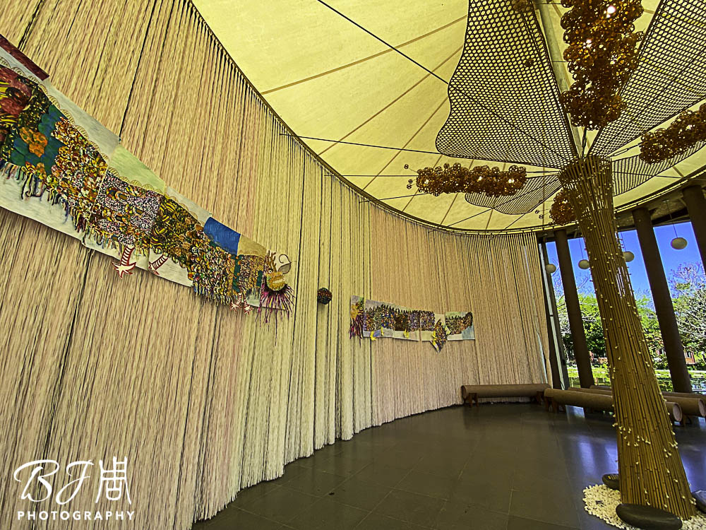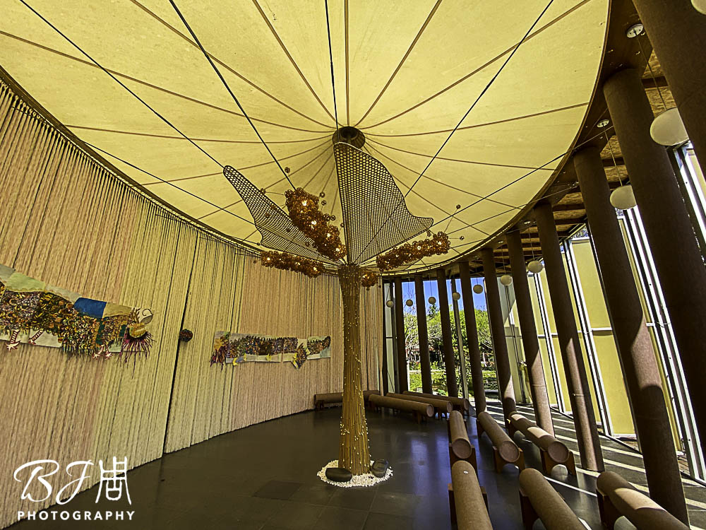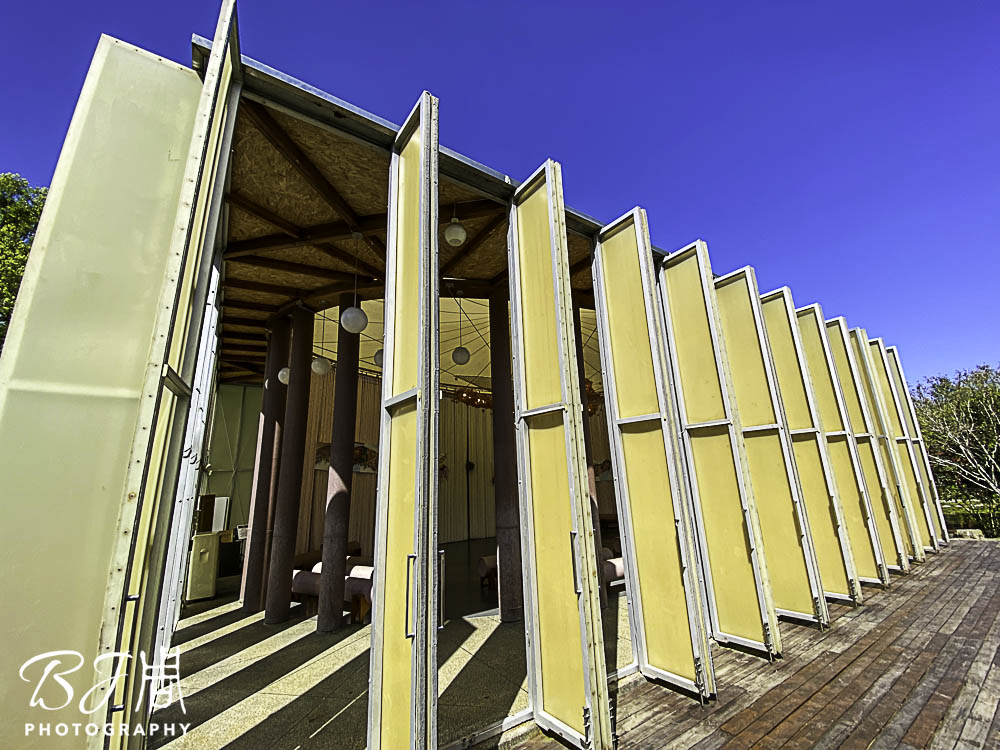 譬如進入園區映入眼簾,以堅硬耐強的鋼素材,彎曲成各種形狀的棚架,與以柔軟脆弱的紙素材所建造的「紙教堂」,形成風格迥異的對比,既令人比較它們的相異之處,也令人反思它們的相同之處。