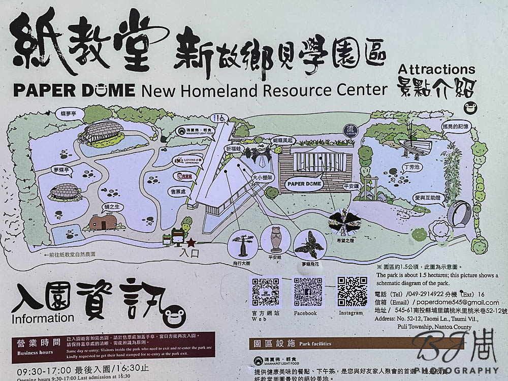 比起紐西蘭基督城的紙教堂,台灣南投埔里的紙教堂就顯得妙趣橫生,原因是台灣紙教堂的旁邊,設置了涵蓋自然生態的「新故鄉見學園區」,帶出了地方特色的教育功能。