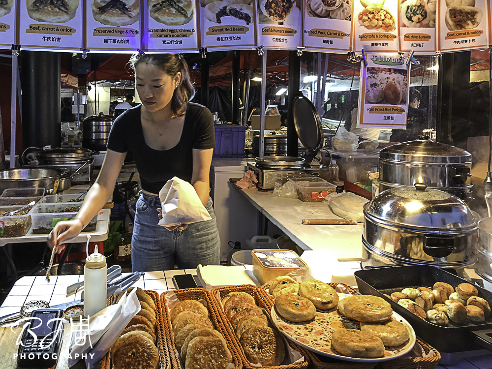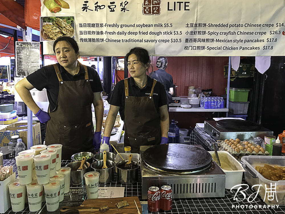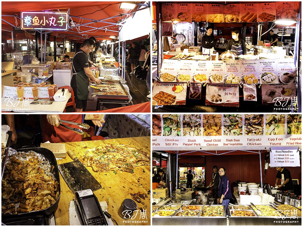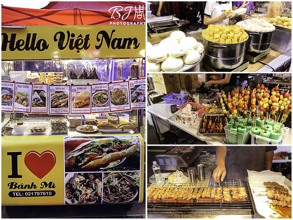其實這個夜市不大,規模有點像台北寧夏夜市,優點是販賣食品的重複性不高,也就是選擇較多,但從其中攤販的口音和面貌看來,看似以華人為主。