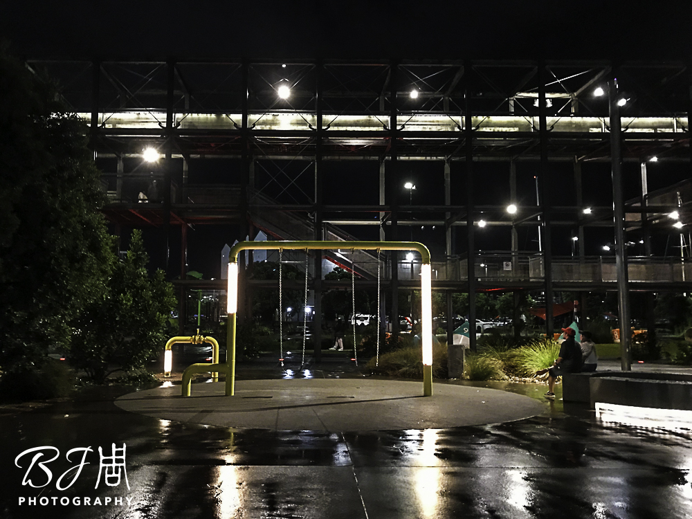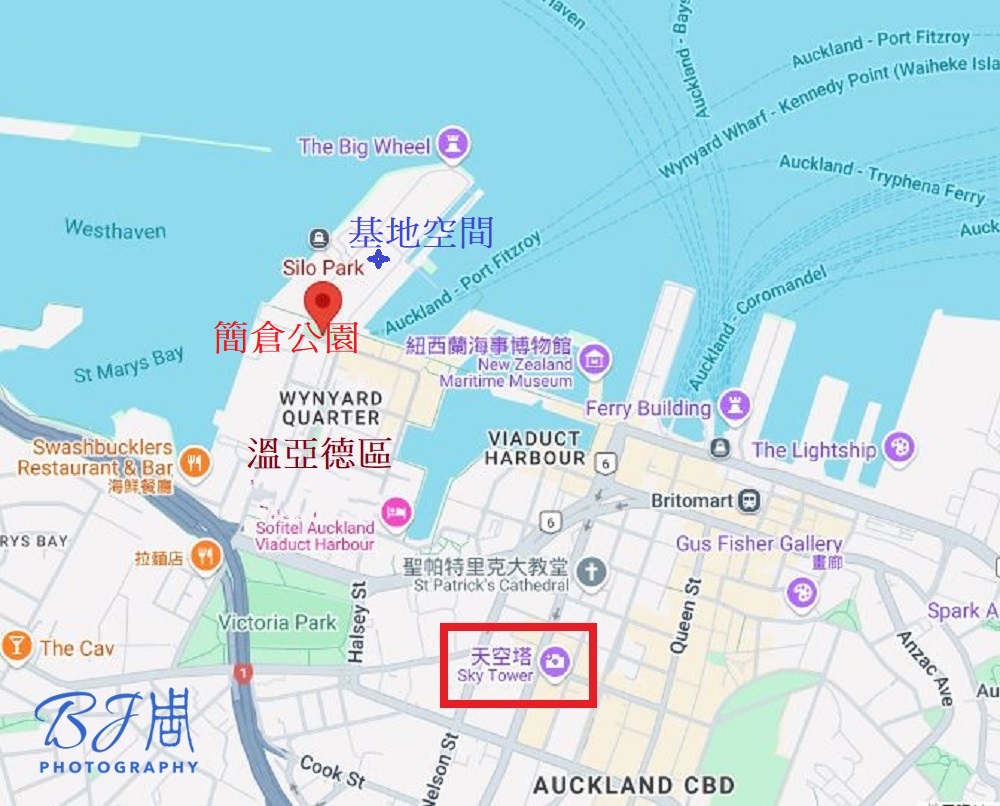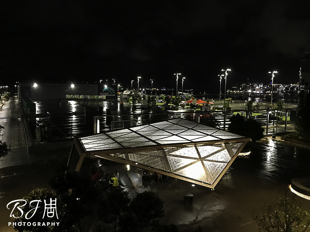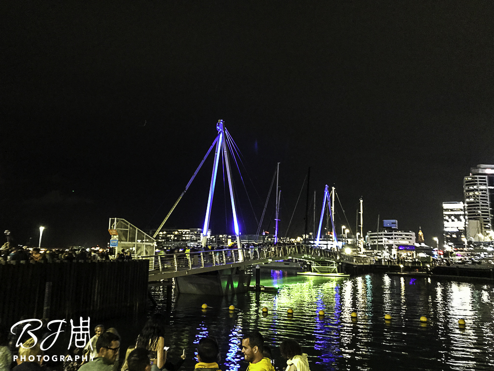「基地空間」設有一座長條空橋,空橋一端可以看到「奧克蘭海灣大橋」,另一端可以遙望天空塔施放煙火。這裡人潮較少,觀賞效果卻奇佳,不怕被什麼大頭帽子高個手機自拍棍入鏡而掃興。