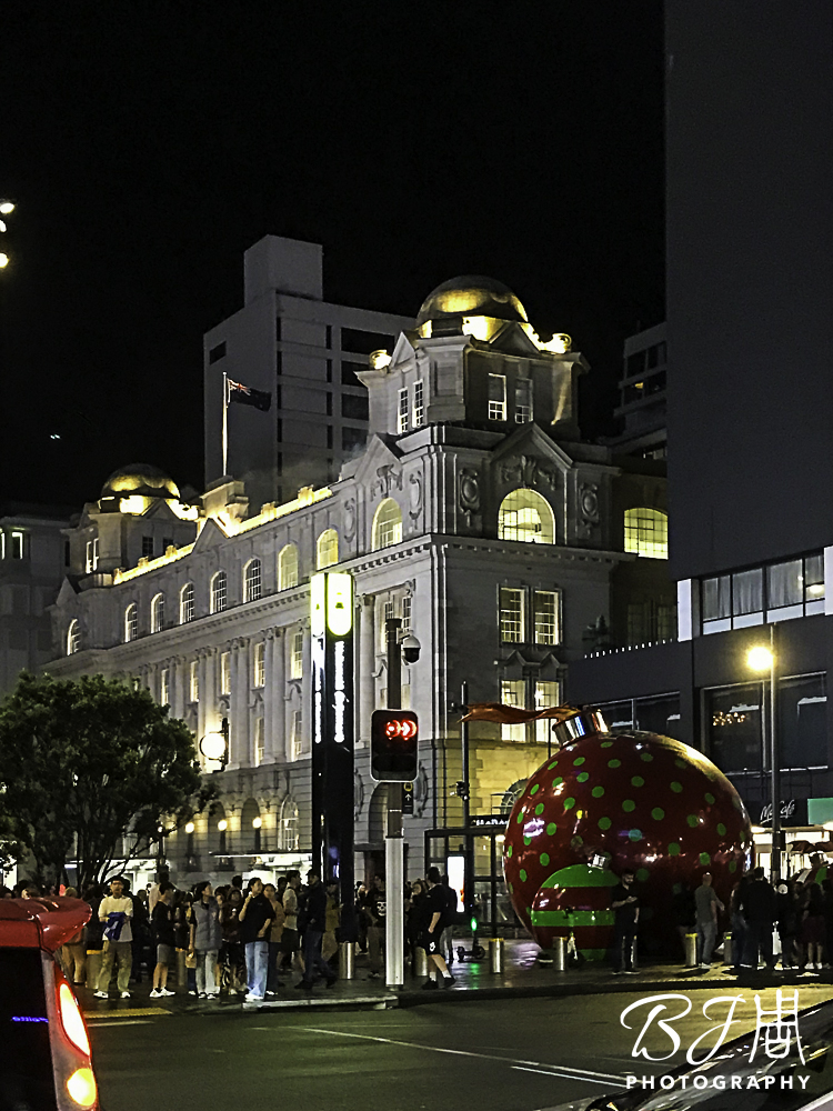 而且我跟你說,紐西蘭12月的半夜氣溫是個位數,又是在海濱,最慘的是那天夜裡還給我下雨!天啊,根本淒風苦雨,我穿了羽絨外套仍抖抖抖,全靠在夜市補充熱量。(幸好放煙火前雨停了)