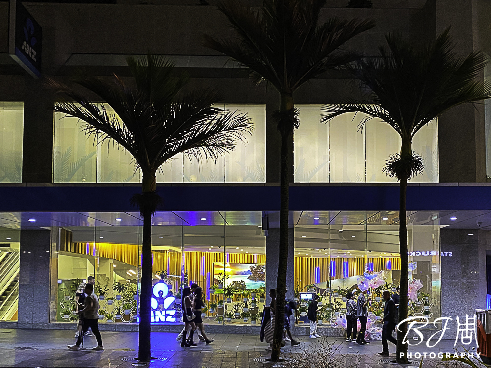 平日我不太可能半夜還在街上遊蕩,藉著除夕奧克蘭夜未眠,隨著人潮沿著市區中心大道徐徐前行,只見巷弄間的夜店酒吧前大排長龍,想來裡面正是管弦嘈雜、歌舞歡騰。