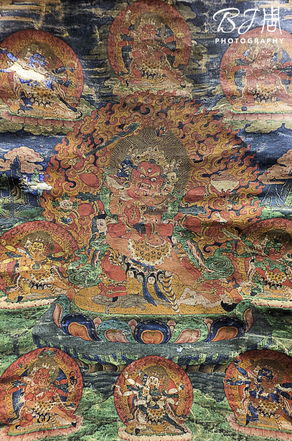 聽到這些介紹,唉,我這頑石還在茅塞不通,可聽到有老外跟導覽討論起展示在牆上的菩薩畫作,說是從細微鑑賞藝術價值,頓時覺得會跑來不丹參觀這些東東的老外,一定有些非凡根器吧?