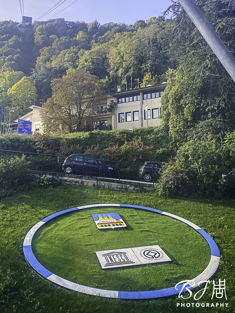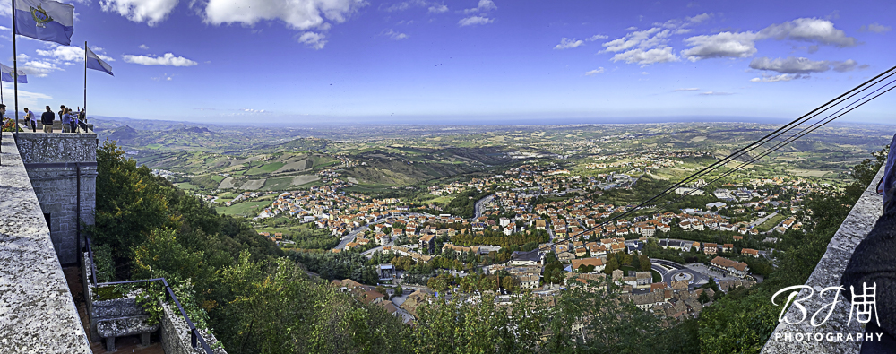 纜車第一班是七點五十分,到聖馬利諾市的站點下車。聖瑪利諾的纜車站不像起點站是一平地,剛好是在斷崖邊上,所以纜車站出來是一廣場,廣場是一處視野遼闊的觀景台。