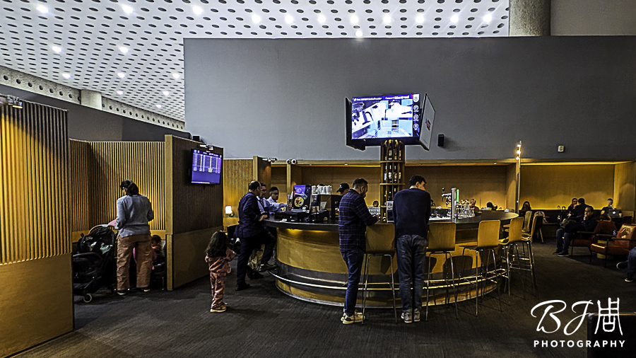 最顯眼的還是位在大廳中央的兩座酒吧。對於墨航貴賓室提供飲料的選擇(含酒精和不含酒精),我必須說十分大器,讓我覺得這間貴賓室更適合想多喝幾杯免費龍舌蘭酒的乘客。